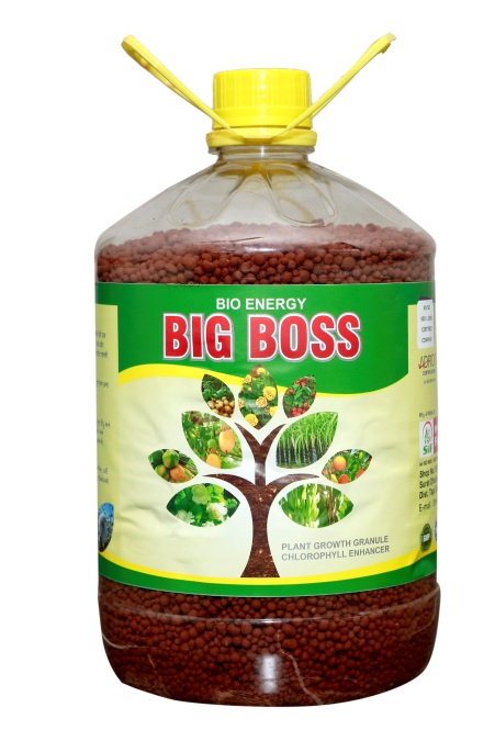 बिगबोस यह श्री इन्डो गुजरात फर्टीलायझर का बहेतरीन परीणाम ओरियेन्टेड ग्रोथ प्रमोटर प्रोडकट है। यह बिग बोस प्रकाश संश्लेषण की क्रिया को बढाता है, पौधों में हरीतकणों की वृद्धि करके पत्तो का पिलापन दूर करता है, पौधा की जड गहरी एवमं धनी होती है। जिसमे पौधों को भुमिसे अधिक पोषक तत्व ले सकते हैं, फुलों का गिरना कम होता है और फुलो और शाखाओ की संख्या बढ़ाता है। उत्पादन के आवश्यक गुण जैसे चमक, चकाकी स्वाद सुगंध, रंग, आकार में वृष्यि होती है। विपरीत मोसमी परिस्थितियोंमें पाँधे की प्रतिकारक शक्ति बनी रहती है। कपास, धान, आलु मंगफली, गन्ना, तपबाकु प्याज, टमाटर, हलदी, मिर्चि, अदुक, जीरा, लसुन, सरसो, सोयाबीन, रोहु एवम् अन्य फसलो शब्जियों बागायत एवम् फल और अन्य तमाम फलोमे उपयोगी है। बिग बोस के लगातार उपयोग से १५ से २०% उत्पादन में बढोतरी होती है.